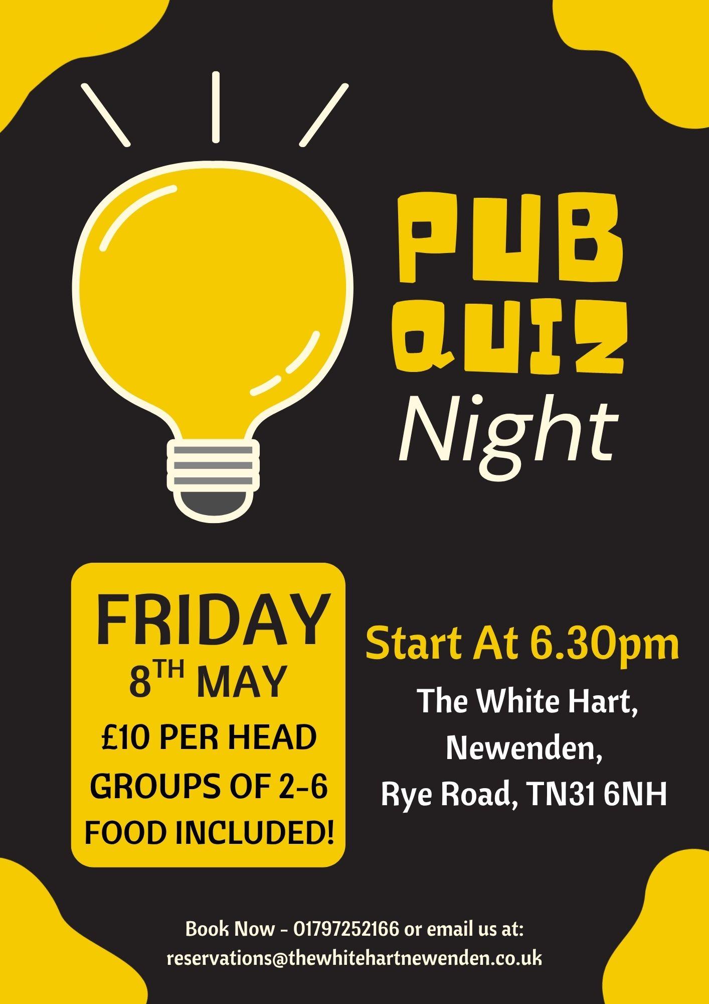 May 8th - Our next Pub Quiz Night takes place on Friday 8th of May starting at 6:30pm! An evening packed of laughs and booze, accompanied by some lovely food all whilst putting your mind to the test! £10 per head and Groups of 2-6 people! Book Now to secure your table! We hope to see as many of you as we can!